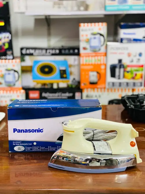The Panasonic NI-22AWT also features an automatic thermostat, powerful 1000W heating, and a pilot lamp indicator for safe operation. Designed for durability, performance, and smooth ironing—perfect for home and professional use.